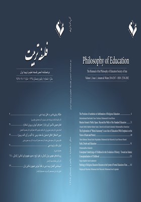 الموضوعات : تاریخ و ماهیت رشته فلسفهٔ تعلیموتربیت، مکاتب و رویکردهای فلسفهٔ تعلیموتربیت قدیم و جدید ،تاریخ اندیشه و عمل تربیتی (سیاستها، برنامهها، اقدامات و...) مفاهیم، گزارهها و نظریههای تربیتی آراء مربیان و فیلسوفان تربیتی روششناسی پژوهشهای تربیتی انواع تربیت مسائل تعلیموتربیت ایران و جهان برنامه درسی و آموزش در رشتههای گوناگونشقایق نیک نشان 1 , دکتر محمد جعفر پاک سرشت 2 , دکتر محمد جواد لیاقت دار 3