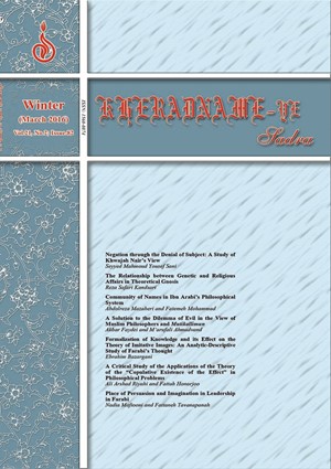 According to Farabi, knowledge means the acquisition of form by the mind or the intellect. He also considers the idea of imitative images as an artistic theory which an artist employs in creating images. Therefore, “from” is the link connecting Farabi’s epistemological and philosophical-artistic theories; without the existence of form, neither will knowledge be realized, nor imitative images will gain perfection. In this paper, the writer has tried to discover the relationship between Farabi’s epistemological and artistic theories following an analytic-descriptive method. In doing so, he considers the items listed below to be the most significant purpose that can be followed given their logical order in Farabi’s philosophy: 1) Attaining the theory of knowledge 2) Discovering the theory of imitative images and disclosing the content of this theory 3) Understanding the relationship between these two theories 4) Demonstrating that the theory of imitative images is purely based on the formalistic theory of knowledge