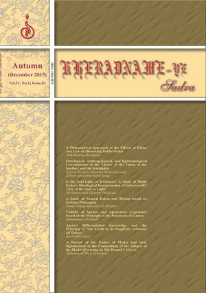 Logicians view both aposteriori and apriori methods of reasoning as arguments. However, the question is whether both of them enjoy equal levels of validity, and whether both attain logical certitude. Based on the principle of “the possessors”, stating that the knowledge of existents which have a cause can only be attained through the knowledge of their cause, Ibn Sina maintains that only the apriori argument, which attains perfect certitude, enjoys logical validity, while the aposteriori argument lacks validity since it does not attain logical certitude. However, he considers the aposteriori argument to be valid and a tool for attaining certainty through general concomitants. Unlike Ibn Sina, Mulla Sadra views all aposteriori arguments to be valid because, in his view, the existence of the effect certainly indicates the existence of the cause. As a result, the knowledge of the existence of the effect leads to the knowledge of the existence of the cause. This paper demonstrates that Ibn Sina’s idea in this regard is justified, while that of Mulla Sadra is illogical and unacceptable because of its inconsistency with well-established logical principles.