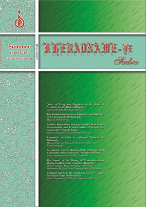 The kind of the relationship between existence and quiddity in the Transcendent Philosophy has been propounded in the discussions on the principiality of existence and the mentally-posited nature of quiddity. Mulla Sadra has explained this relationship in two ways. On the one hand, he argues that existence is originally and essentially realized, and quiddity is realized by accident and through the mediation of existence, with which it is eventually united. On the other hand, he believes that it is only “existence” which is objectively realized, and quiddity never steps into the realm of existence and is merely a mentally-posited affair which the intellect abstracts from existence. These two apparently different interpretations seem to have created a confusion among the researchers in this field. That is why some of them have accused him of contradiction, and some others have tried to justify this contradiction in a way. However, a reference to Mulla Sadra’s collection of works makes it clear that these two interpretations are not contradictory. When he states that existence and quiddity are realized by essence and by accident, respectively, he is referring to the nature of the existent, and when he negates the existence and realization of quiddity, he is referring to quiddity in separation from existence. In this paper, the writer has tried to clarify this point by reference to the works of Mulla Sadra himself.
