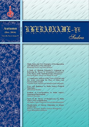 Mulla Sadra’s philosophical thoughts profoundly influenced the development of art, in general, and the architecture of his time, in particular. Therefore, it seems necessary to carefully examine and discuss his ideas and theories in this regard in order to have a better and more accurate understanding of the art and architecture of that period. Since the concept of imagination plays a basic role in the definition of Islamic art from the point of view of Mulla Sadra and other Islamic philosophers and gnostics, in this paper the writers firstly deal with a part of his philosophy that explains this concept. Following this, they will refer to the role and place of imagination in art works in their general sense and explore the actualization of such works in the field of architecture, particularly, those of the Safavid era. Imagination plays such a central role in this discussion that one can define Islamic art in its general sense as the manifestation of an intelligible matter in a sensible one through active imagination.