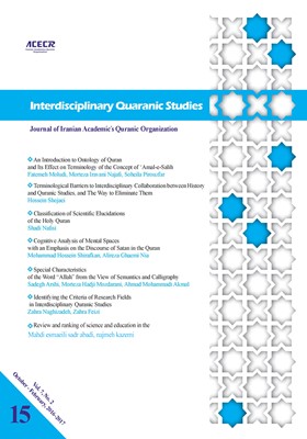 Mankind craves for perfection and in order for his growth, he needs to identify obstacles facing in his path. One of the main obstacles on his path which keeps him aloof from Allah is Satan. Hence, identifying and recognizing Satan as a great barrier which prevents him from reaching a defined objective is necessary. In the Holy Quran there are many conversations, including those suggested by Satan. Mentioning Satan’s dialogues in the Quran demonstrates the importance of this matter in the sight of Allah. In this paper, verses containing the words of Satan are investigated and analyzed based on cognitive conceptualization in order to explain and recognize the reality of Satan’s words in the Quran and the way they make sense in this group of verses. It considers Satan’s words in five categories, of Satan’s superiority, asking for respite, dominance, seeking good and Satan’s promise, the mind can make a good concept of these matters and is ready to analyze them. In conclusion, it can be said that Satan’s mental space stands against the divine mental space and the followers of each have tendency toward the mental space in accordance with their capacity and thoughts.