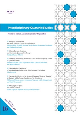 The idea of Interdisciplinary Studies of the Holy Quran and Psychology is thought as a favorable theoretical ground for evolution in Humanities with a Quran-centered approach in the Islamic community. Especially since Quranic teachings, according to Quran’s special anthropological approach, have a fundamental role in psychological texts. This paper, using the descriptive-analytical method, is to present the epistemological foundations and features of Interdisciplinary Studies of the Holy Quran and Psychology. The findings of the research show that Interdisciplinary Quranic Studies rely on the five senses and intellect, as well as the revelation and heart, whereas conventional psychology by using a proof-based method, relies only on senses and experiences. The results also showed that the main distinctions between Interdisciplinary Quranic Studies compared to conventional psychology are as follows: comprehensiveness, attention to the origin and resurrection, certainty and infallibility, possessing an all-inclusive structure, and proportionality between Takwīn (Creation) and Tashrī’ (Decree). The innovation of this research is investigating on Interdisciplinary Study of the Quran and Psychology based on Islamic epistemological foundations.