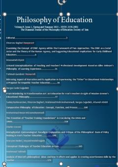 Subject Areas : تاریخ و ماهیت رشته فلسفهٔ تعلیموتربیت، مکاتب و رویکردهای فلسفهٔ تعلیموتربیت قدیم و جدید ،تاریخ اندیشه و عمل تربیتی (سیاستها، برنامهها، اقدامات و...) مفاهیم، گزارهها و نظریههای تربیتی آراء مربیان و فیلسوفان تربیتی روششناسی پژوهشهای تربیتی انواع تربیت مسائل تعلیموتربیت ایران و جهان برنامه درسی و آموزش در رشتههای گوناگون